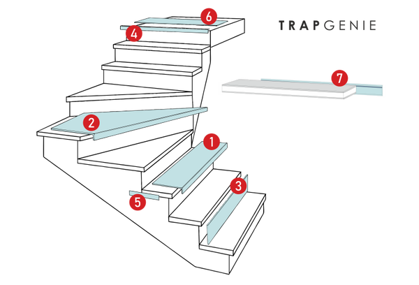 - Trapneusprofiel om de bovenste traptrede te verbinden met de overloopvloer.